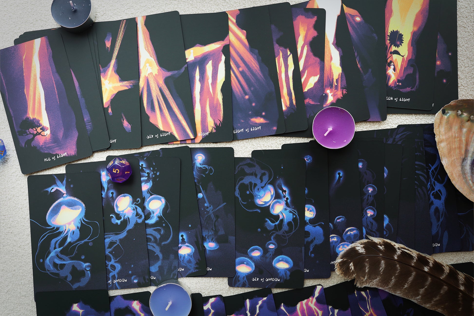 The idea for this deck was born from the interplay of light and shadow, inspired by the balance of yin and yang energies. In life, we are constantly navigating these forces: