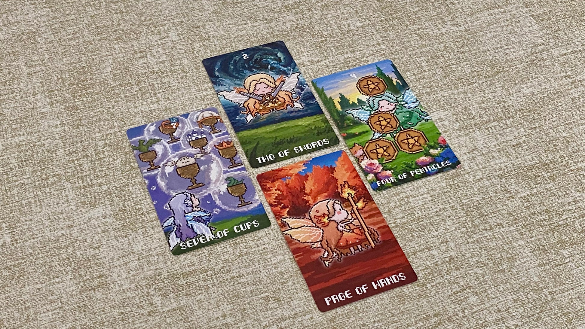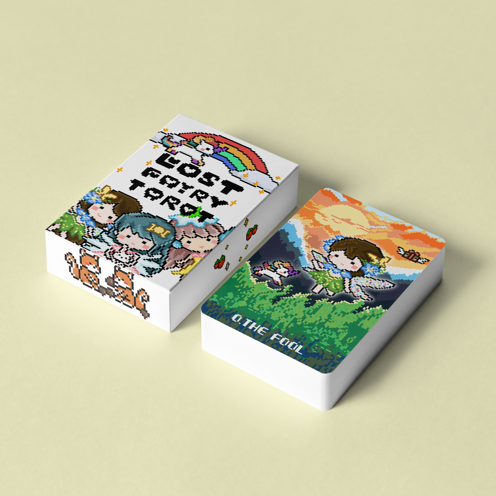 The Lost Fairy Tarot draws its inspiration from our first pixel-style tarot deck, the 8-bit Fantasy Tarot. In that deck, two special cards, The Dreamland andThe Lost Land, became fan favorites. From the world of the forest fairy riding a deer, we've expanded this magical world to create the Lost Fairy Tarot, a deck full of whimsical fairies and fantasy creatures.