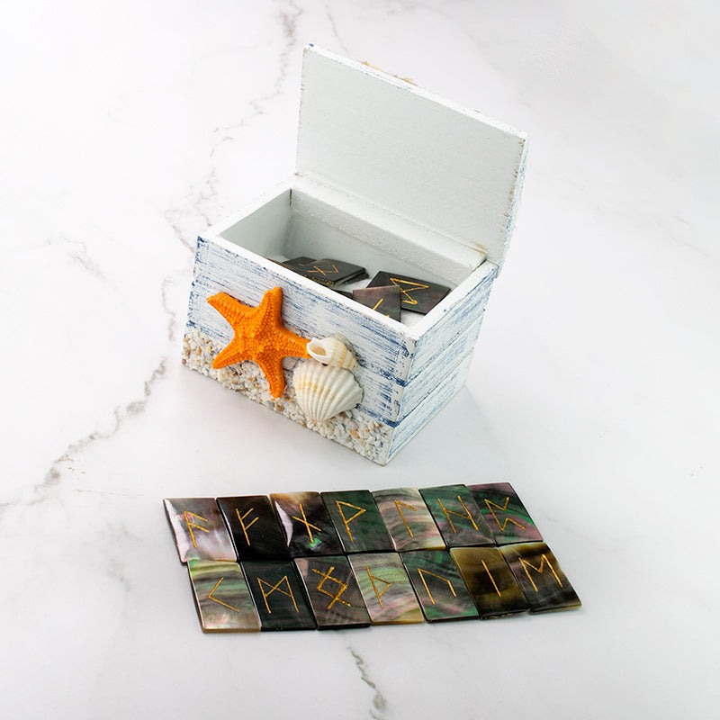 Whether you're a seasoned practitioner or a newcomer to the world of Runes, our Pinctada margaritifera Rune set is sure to impress. They make a beautiful addition to any collection of divination tools, or a thoughtful and unique gift for someone special. Order yours today and discover the magic of the ocean and ancient wisdom combined!