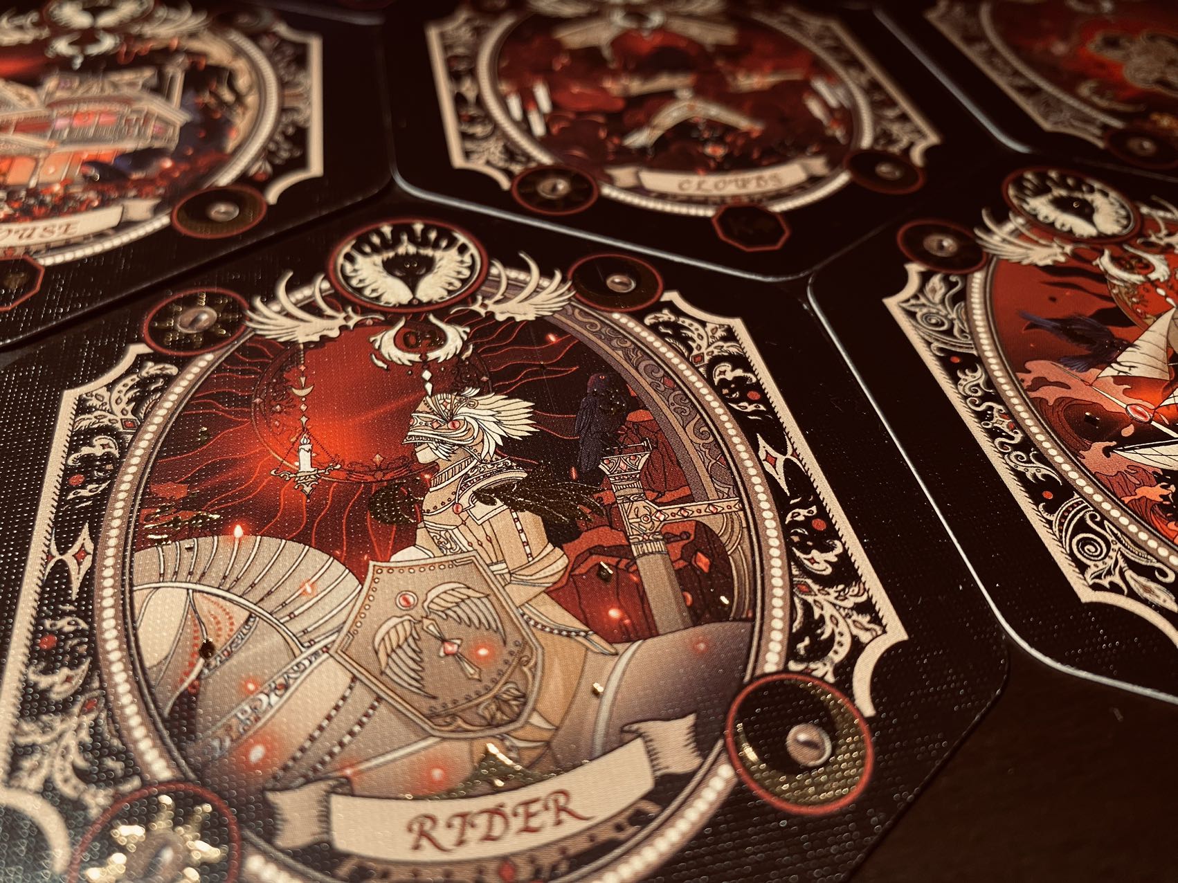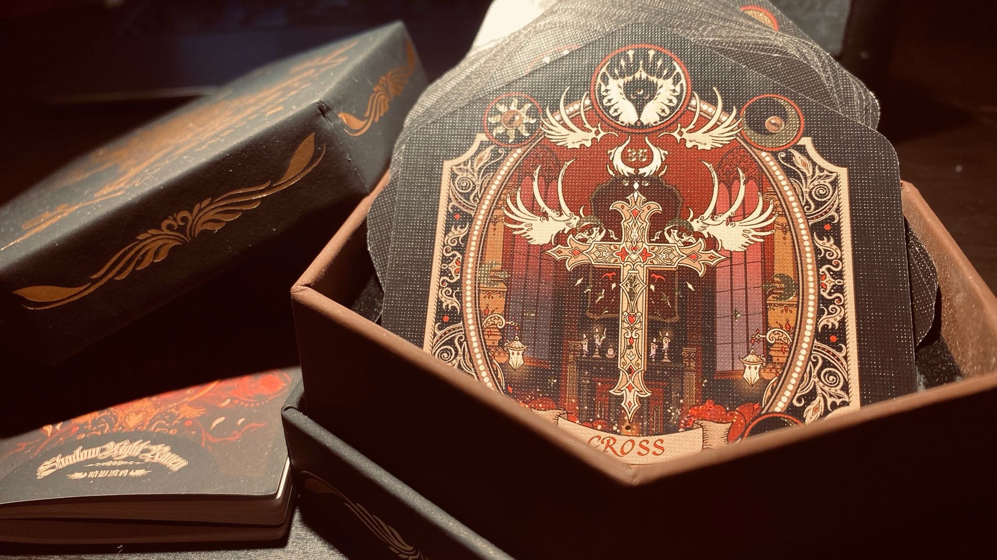 - Gold foil stamping on card faces and backs