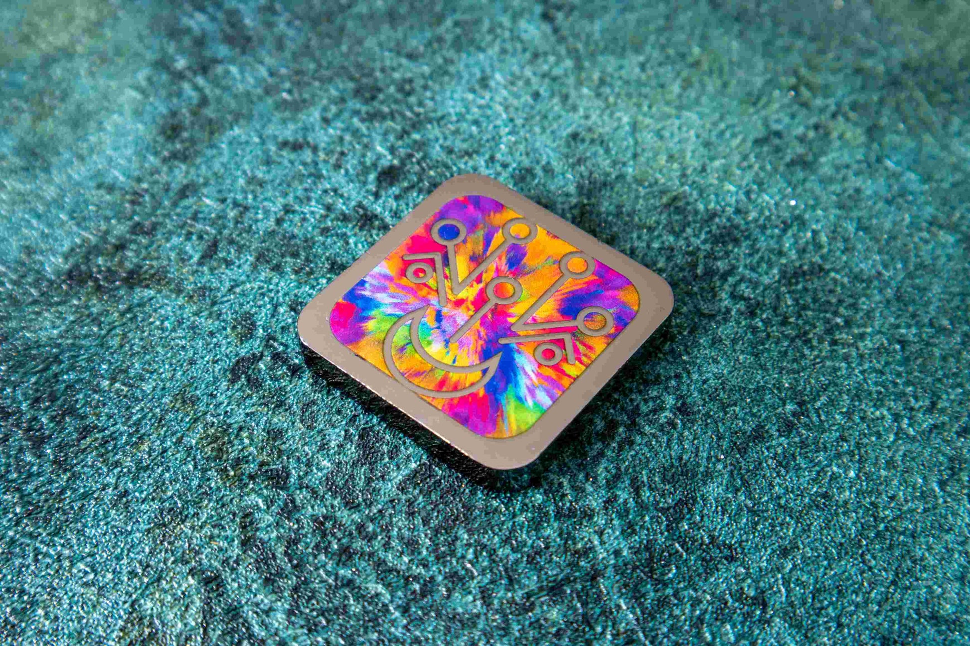 Front side: The unique enamel base is covered with UV color and a 3D metal symbol.