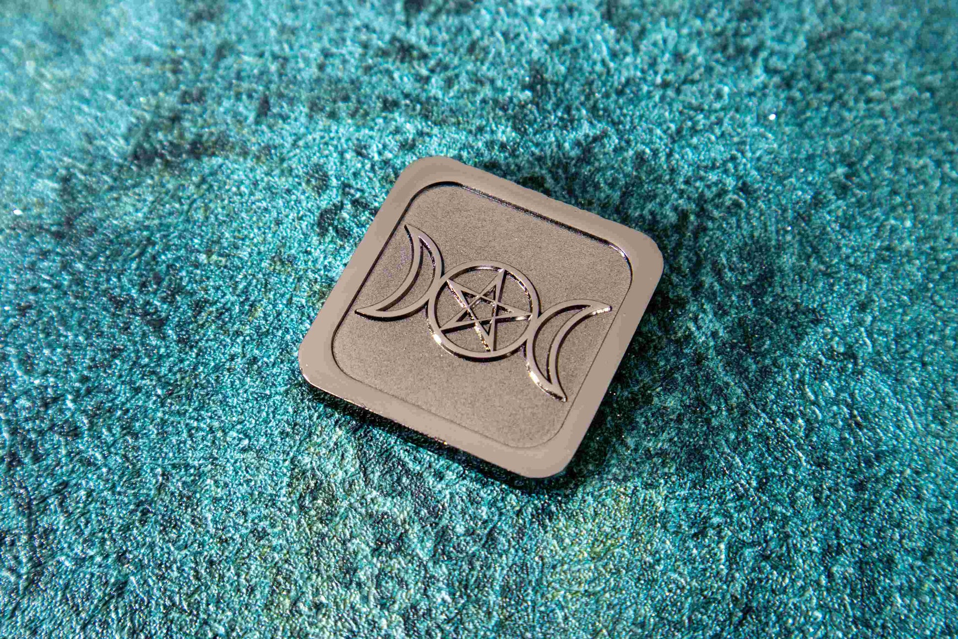Back side: Luminous black Rune, matte black wash, 3D embossed triple moon pattern.